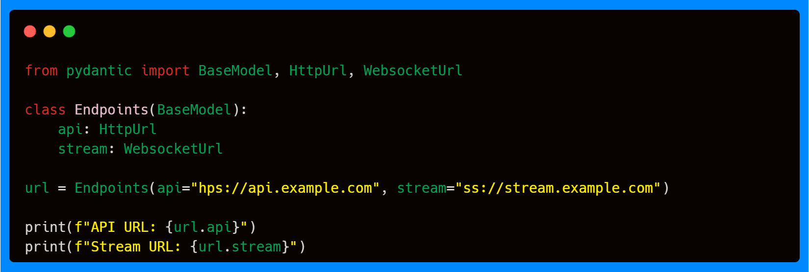 For API and streaming workloads, Pydantic validates URLs out of the box.