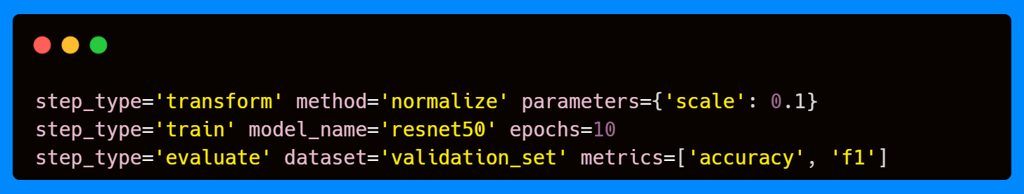 Let’s say we’re building an ML workflow system where each step can be a transform, a train, or an evaluate step.